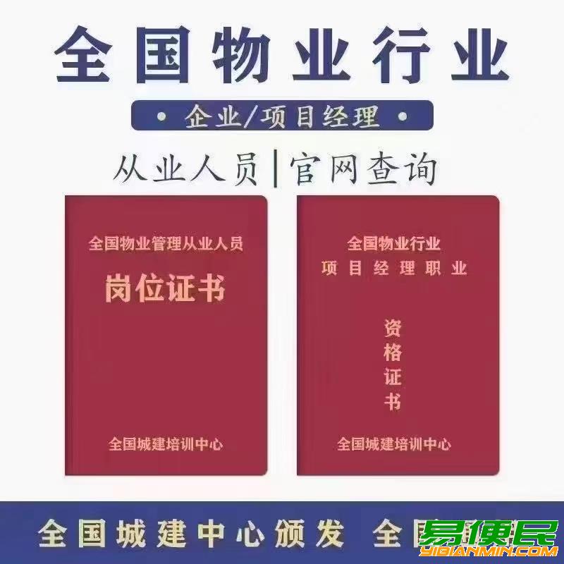 物业管理、物业经理、项目经理证由全国城建培训中心颁发,证书全国通用,含金量高,官网查询,物业管理企业资质申办、升级必须具备;物业管理从业人员持证上岗必备,物业项目招投标等 。